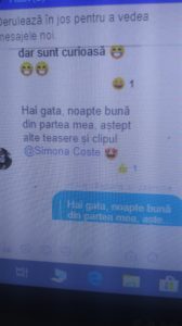 Am stabilit un deadline (care s-a prelungit…) și am început să primesc filmări. Pentru a le motiva și a le mobiliza pe fete. Geanina și eu am scris constant pe grupul de messenger, cu tag la fete, cu întrebări. Geanina chiar a ajuat două dintre fete să facă filmarea. Ne-am adunat la taclale și am încins messenger-ul timp de câteva zile. Eu editam și le trimiteam teasers, Geanina le întreținea cu glumițe de tot felul. Implicarea a fost extraordinară. Fetele stăteau cu sufletul la gură să vadă părți din clip, să mă susțină, să povestească. Am editat săptămâna aceasta marți, miercuri și joi până târziu în noapte. Joi s-a organizat group watch 😊, fetele s-au adunat pe grup cu câte un pahar de vin, pizza, fructe și așteptau să vadă versiunea finală a clipului.