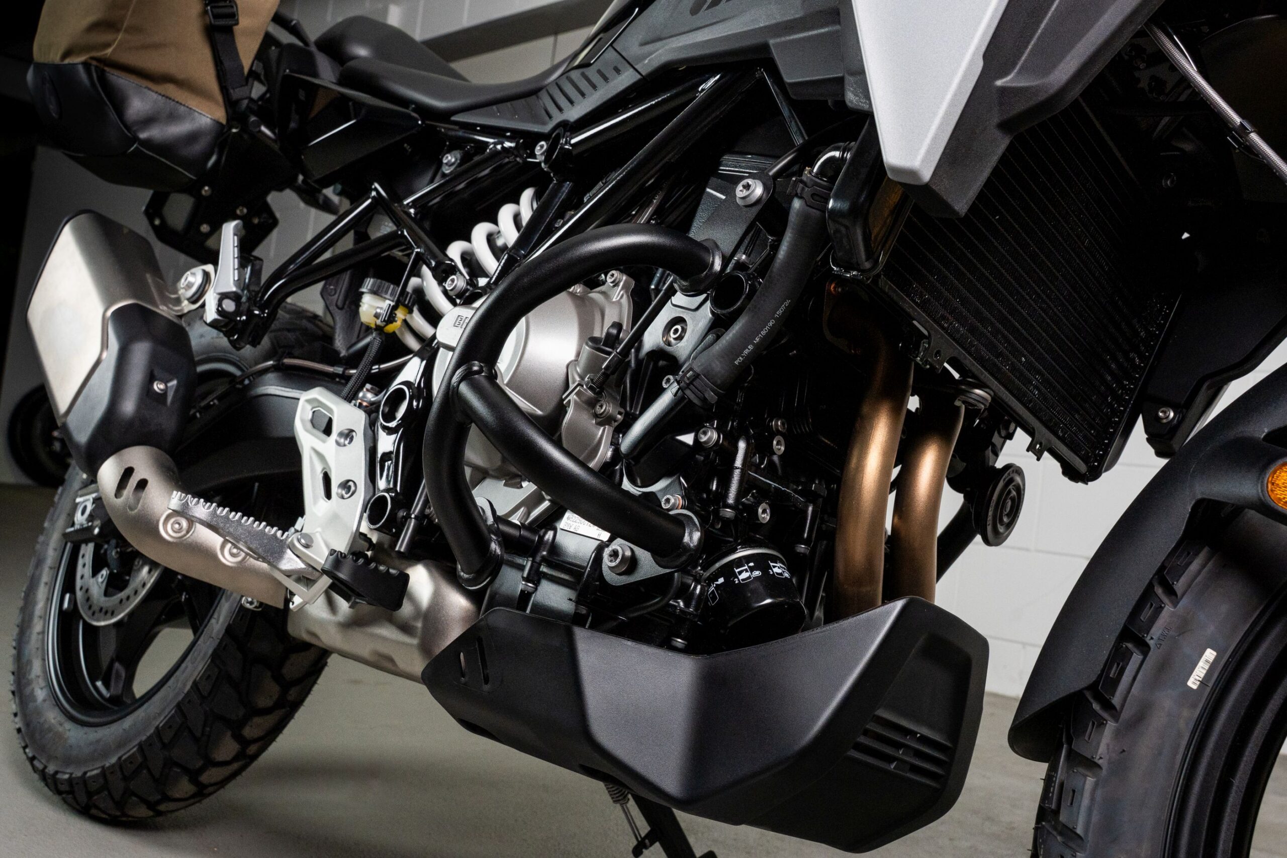 Înainte de a discuta despre configurațiile pe care le-am făcut noi, să ne uităm la ce aduce F450 GS pe piață. Scriem despre un adventure-tourer cu doi cilindri în linie, de 420 cmc, de sub 180 de kilograme în ordine de mers și cu roată față de 19 inchi. Cilindreea relativ redusă îl  face să aibă un consum mic (3.8 litri la sută mixt) și rezervorul de 14 litri îi conferă o autonomie de aproximativ 350 de kilometri.