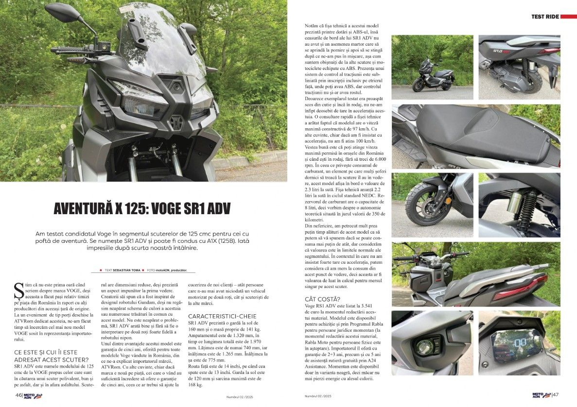 Am testat candidatul Voge în segmentul scuterelor de 125 cmc pentru cei cu poftă de aventură. Se numește SR1 ADV și poate fi condus cu A1X (125B). Iată impresiile după scurta noastră întâlnire.