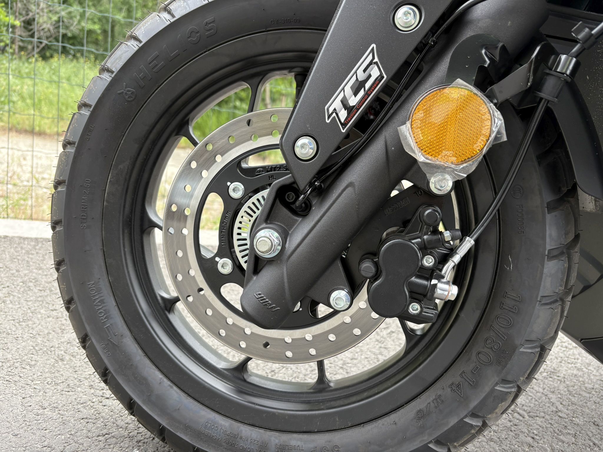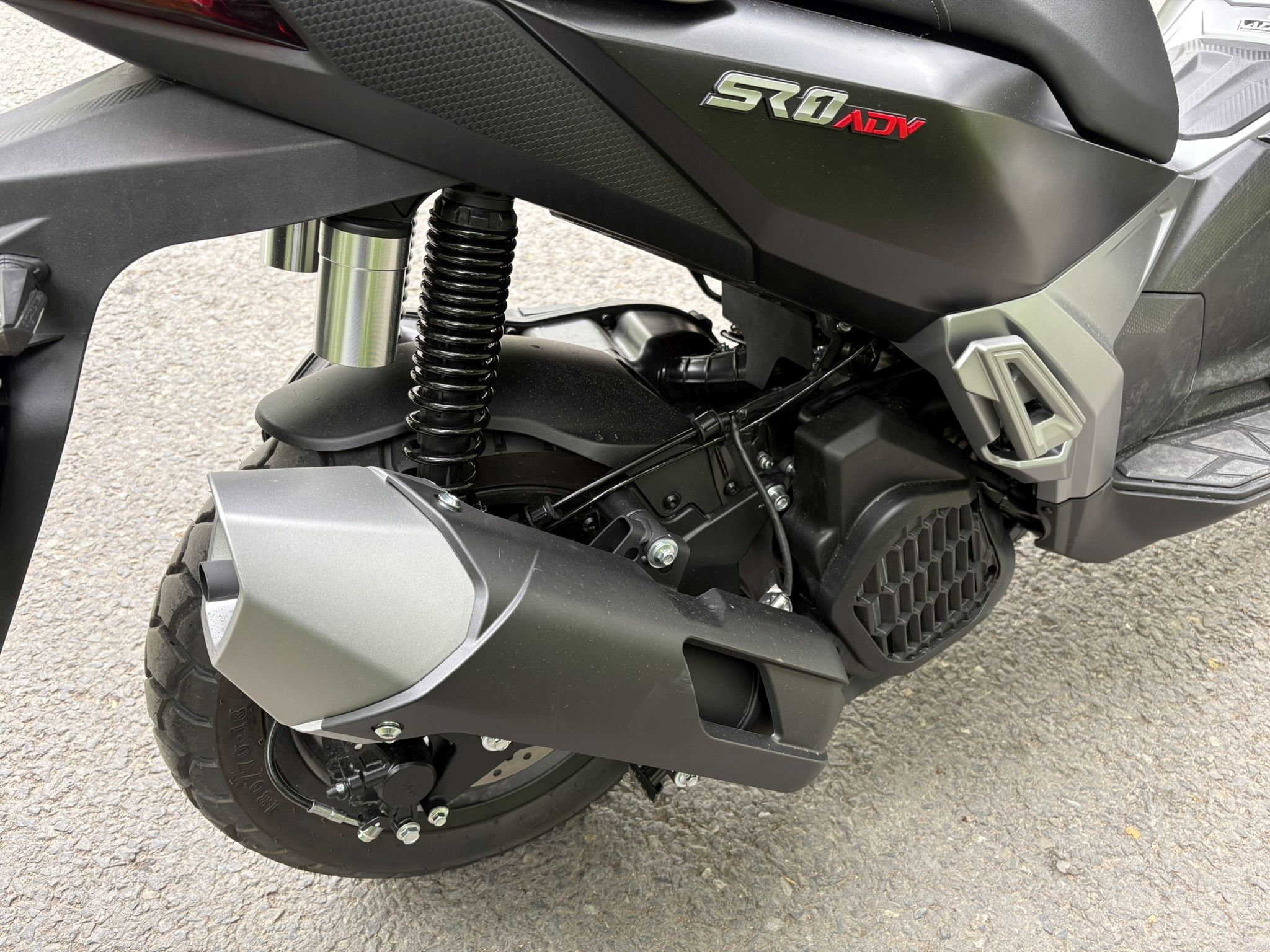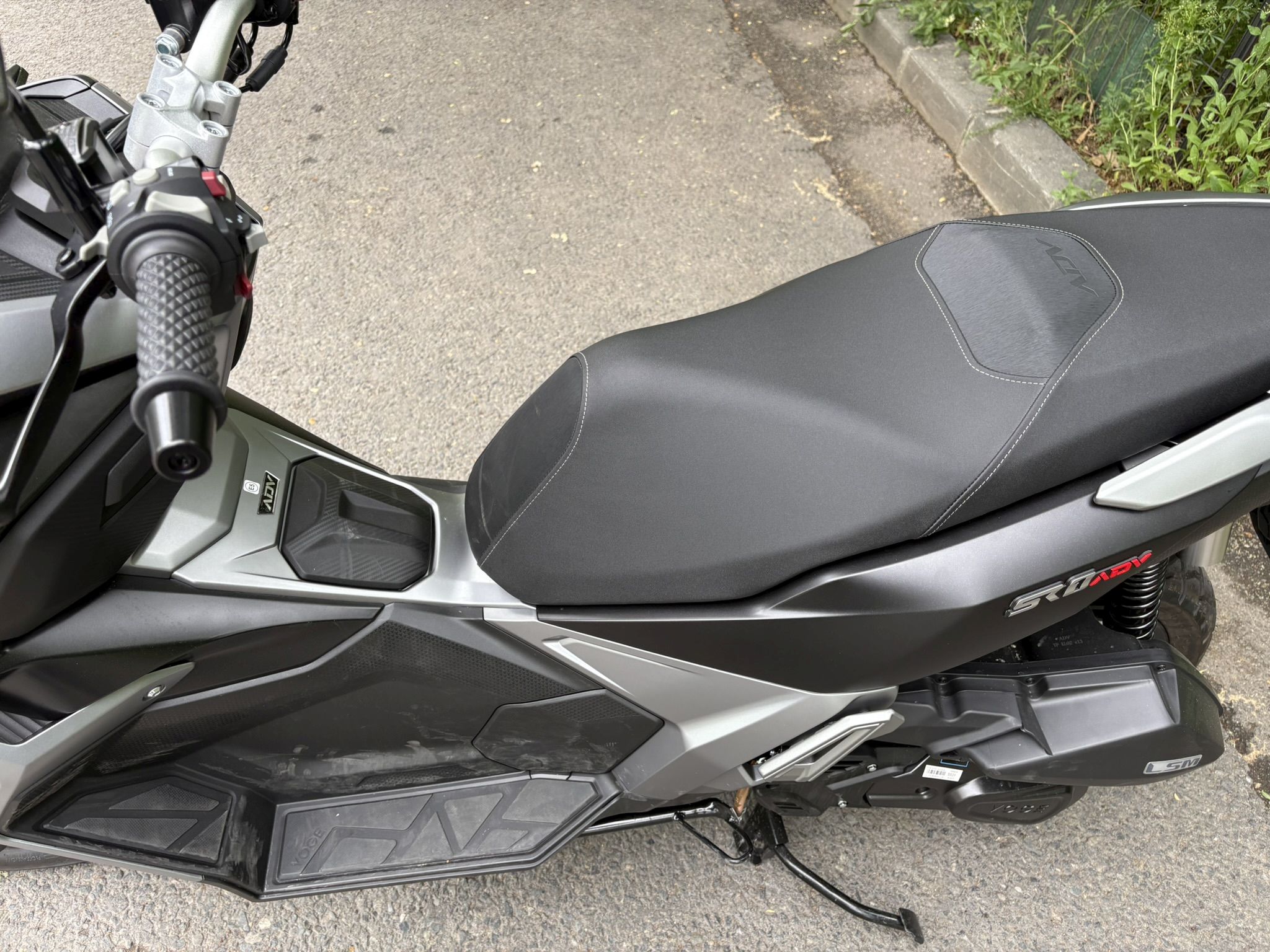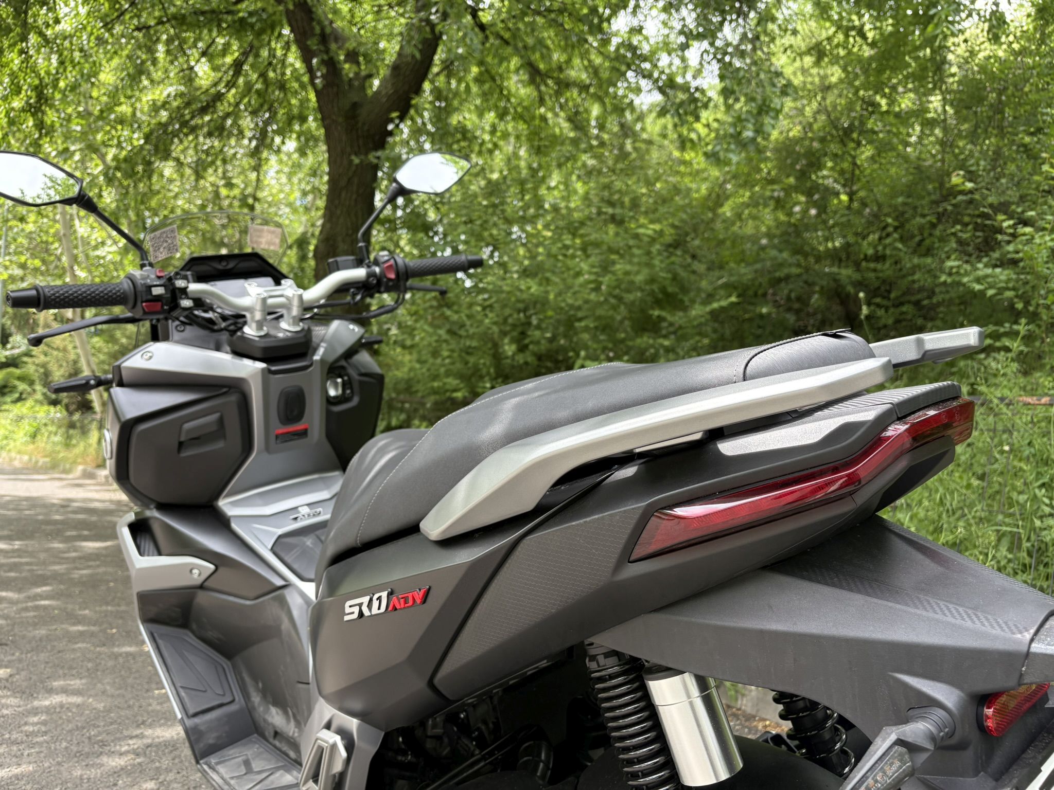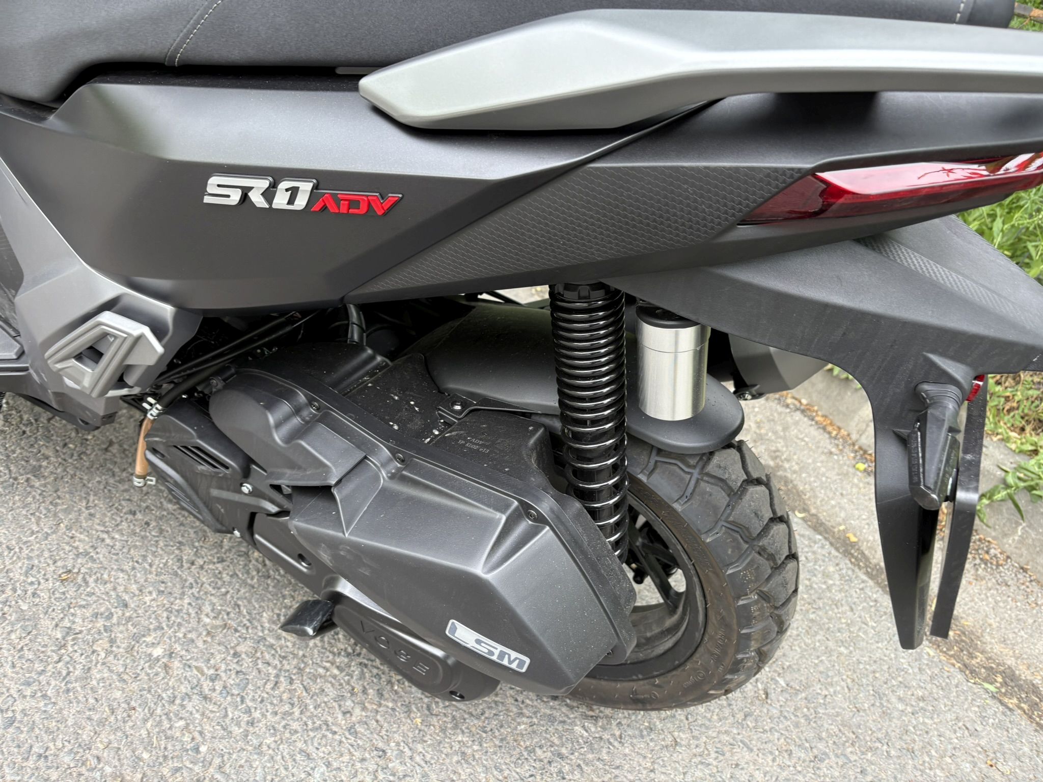 Notăm că fișa tehnică a acestui model prezintă printre dotări și ABS-ul, însă ceasurile de bord ale lui SR1 ADV nu au avut și un asemenea martor care să se aprindă la pornire și apoi să se stingă după ce ne-am pus în mișcare, așa cum suntem obișnuiți de la alte scutere și motociclete echipate cu ABS. Prezența unui sistem de control al tracțiunii este subliniată prin inscripții inclusiv pe etrierul față, unde poți avea ABS, dar controlul tracțiunii nu și-ar avea rostul.