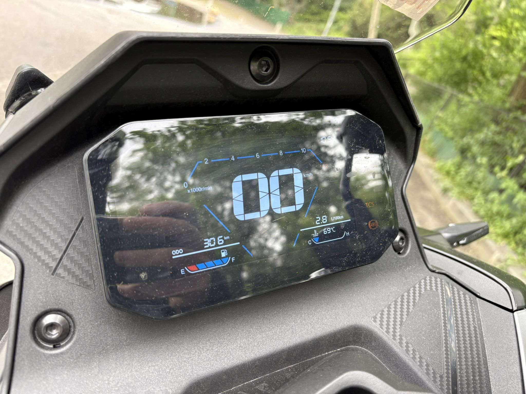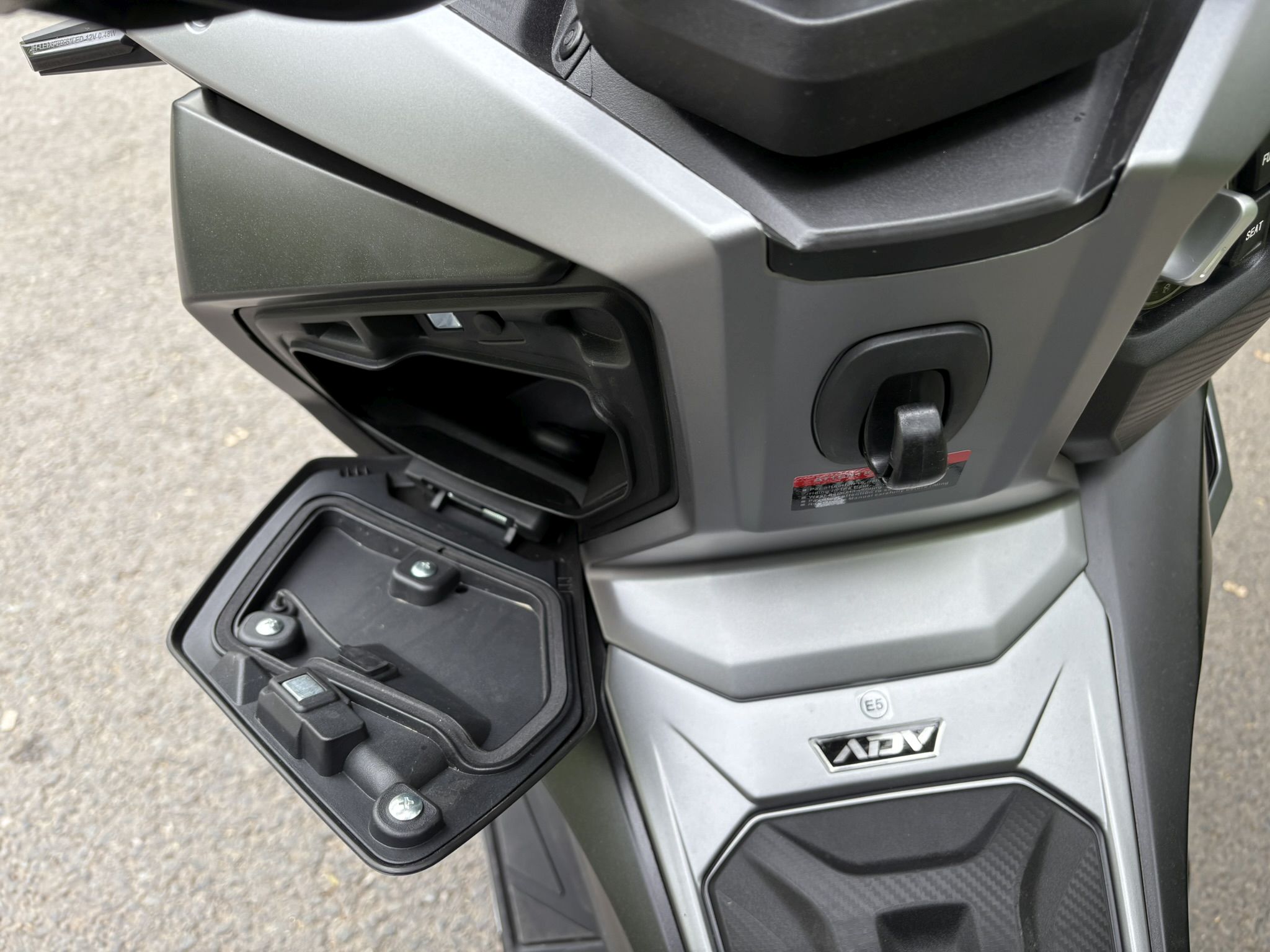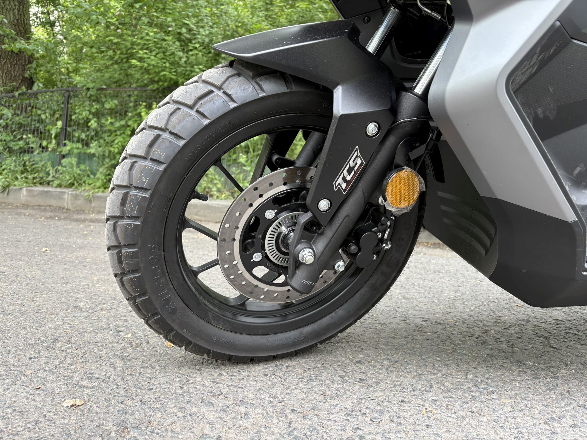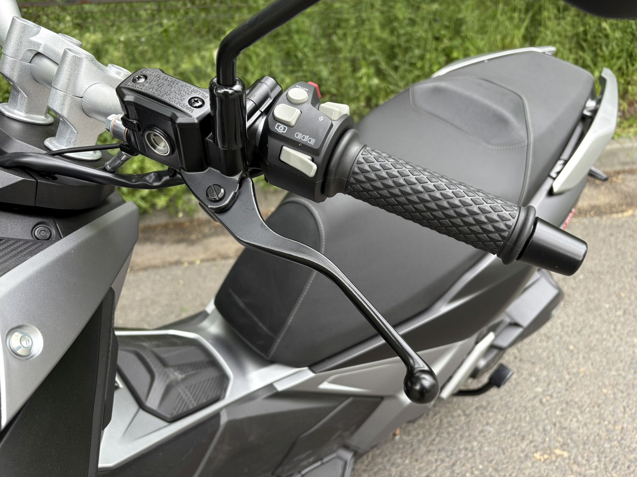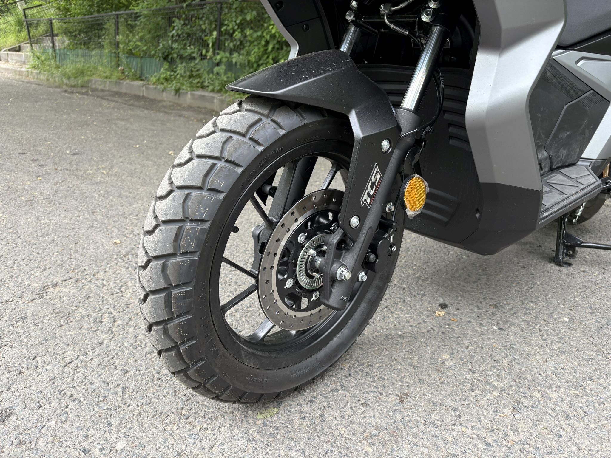 Notăm că fișa tehnică a acestui model prezintă printre dotări și ABS-ul, însă ceasurile de bord ale lui SR1 ADV nu au avut și un asemenea martor care să se aprindă la pornire și apoi să se stingă după ce ne-am pus în mișcare, așa cum suntem obișnuiți de la alte scutere și motociclete echipate cu ABS. Prezența unui sistem de control al tracțiunii este subliniată prin inscripții inclusiv pe etrierul față, unde poți avea ABS, dar controlul tracțiunii nu și-ar avea rostul.
