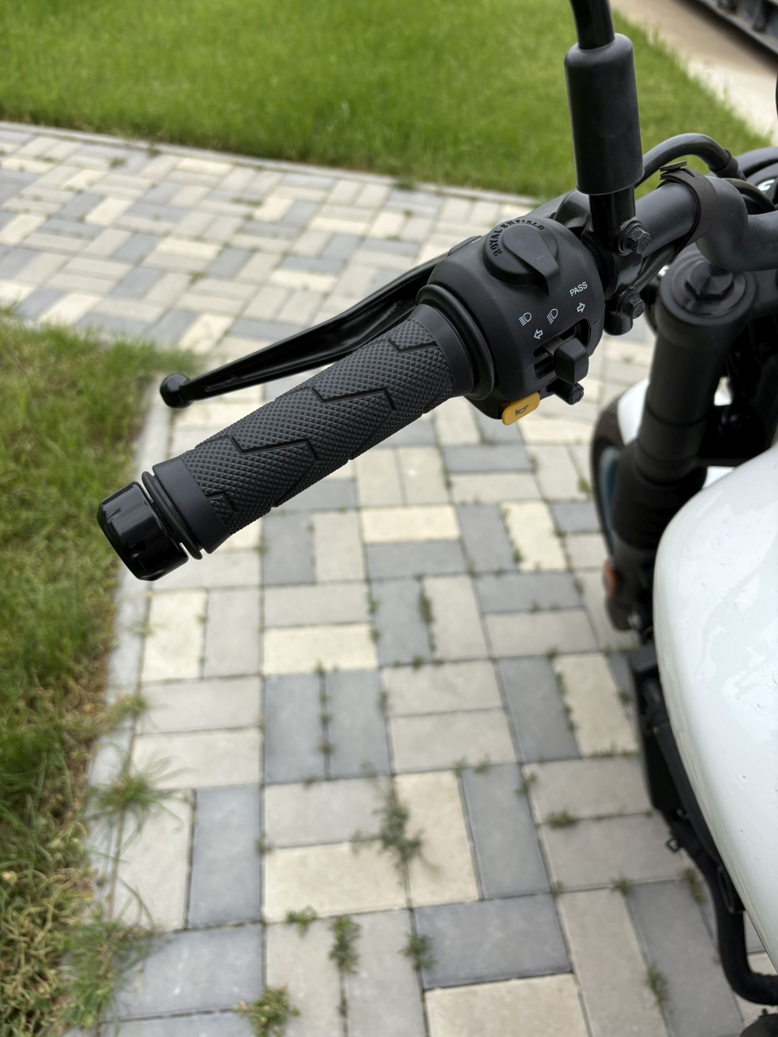 Sistemul de frânare este suficient pentru resursele din dotare, fiind facil de dozat și gestionat. Nu poți decupla ABS-ul doar pe spate și nu este prezent controlul tracțiunii sau posibilitatea de a opta pentru un quickshifter sau tempomat. Nici ABS-ul nu este sensibil la gradul de înclinare al motocicletei, așa că singurul reglaj posibil este optarea între unul dintre cele două moduri de rulare. Comenzile sunt și ele simplu de înțeles, chiar dacă nu ai posibilitatea de a regla poziția manetelor la începutul cursei – ce poate fi problematică pentru cei cu degete scurte.