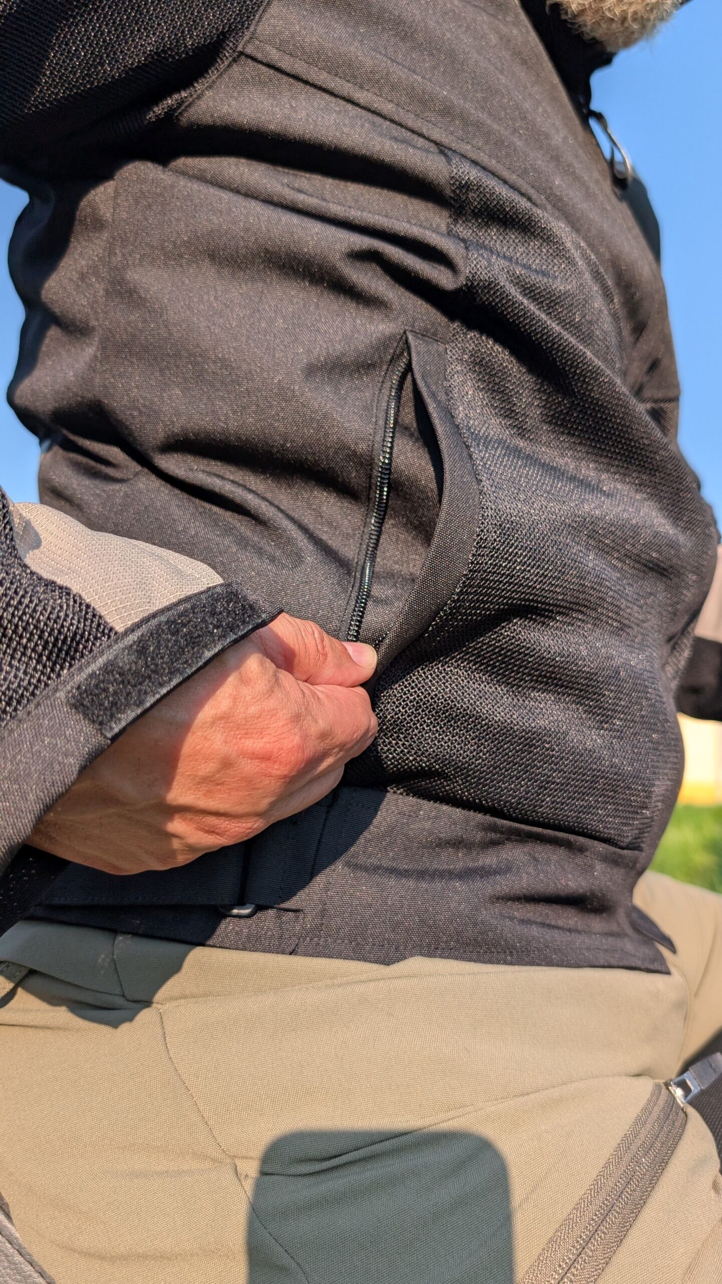 Geaca poate fi strânsă la talie, iar protecțiile CE pot fi și ele reglate. În materie de buzunare, avem două externe și unul intern. Mânecile și gulerul se pot strânge și închide cu arici. Potrivit producătorului, geaca are o masă de 1.5 kilograme. Este destul de ușoară pentru o geacă moto.